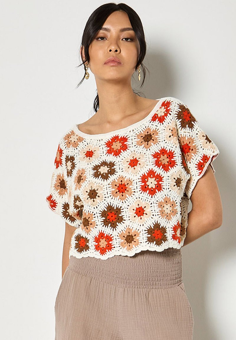 HEXAGON FLOWERS CROCHET - Blouse - orange