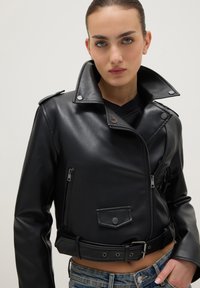 BIKER REGULAR FIT WITH METALLIC DETAILS AND DIAGONAL ZIP - Blazer - gunmetal