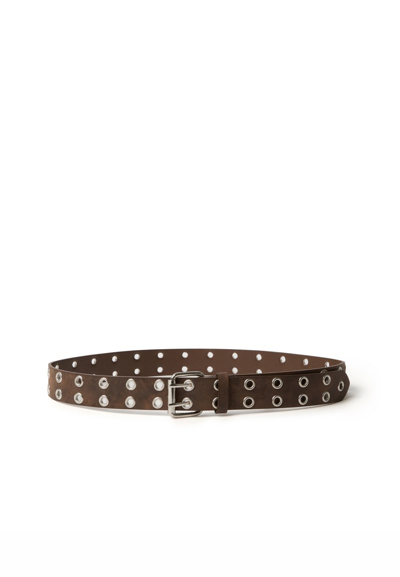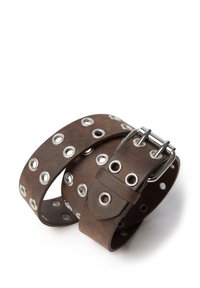 De bruine riem uit de B.Angel-lijn is een onmisbaar accessoire voor elke vrouw. Het ontwerp is voorzien van metalen studs over de gehele oppervlakte. De stevige metalen gesp voegt een vleugje stijl toe aan je accessoirecollectie en is ideaal voor elke outfit.