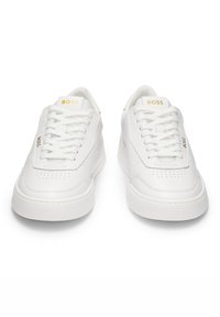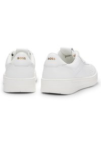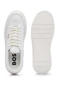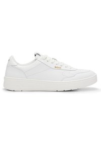 In Portugal vervaardigde BOSS lage sneakers in basketbalstijl gemaakt van zacht leer met stijlvolle goudkleurige logo's.