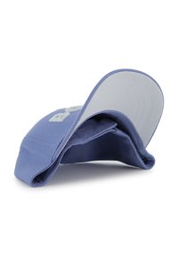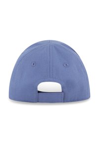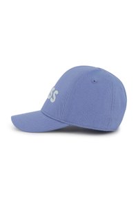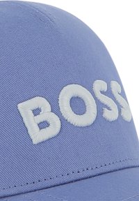 Blauwe baseballpet van katoen met een geborduurd wit "BOSS"-logo aan de voorkant, voorzien van een gebogen klep en een gestructureerde kroon.