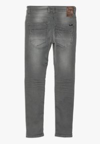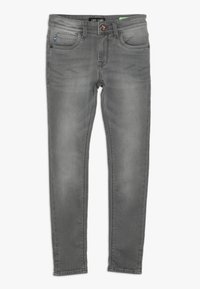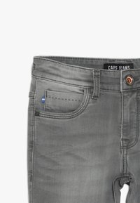 Grijze jeans met een slim fit, gemaakt van denim. Kenmerken zijn onder andere vijf zakken, een knoopsluiting en subtiele vervaging voor textuur.