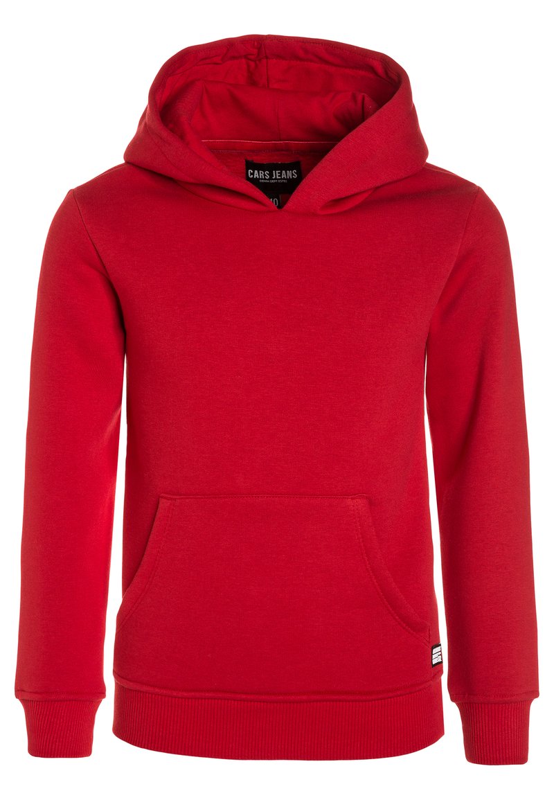 Rode sweatshirt met capuchon, gemaakt van een zachte katoenmix. Voorzien van een kangoeroezak, ribgebreide manchetten en zoom, en een comfortabele pasvorm.