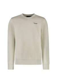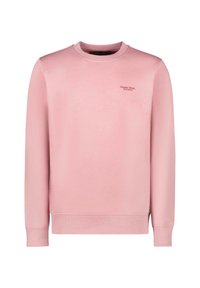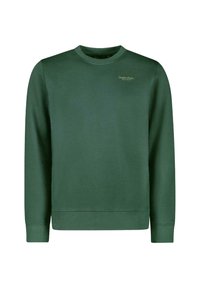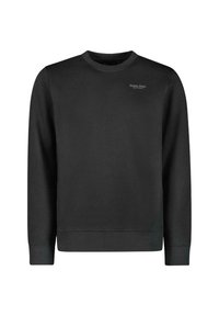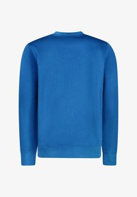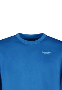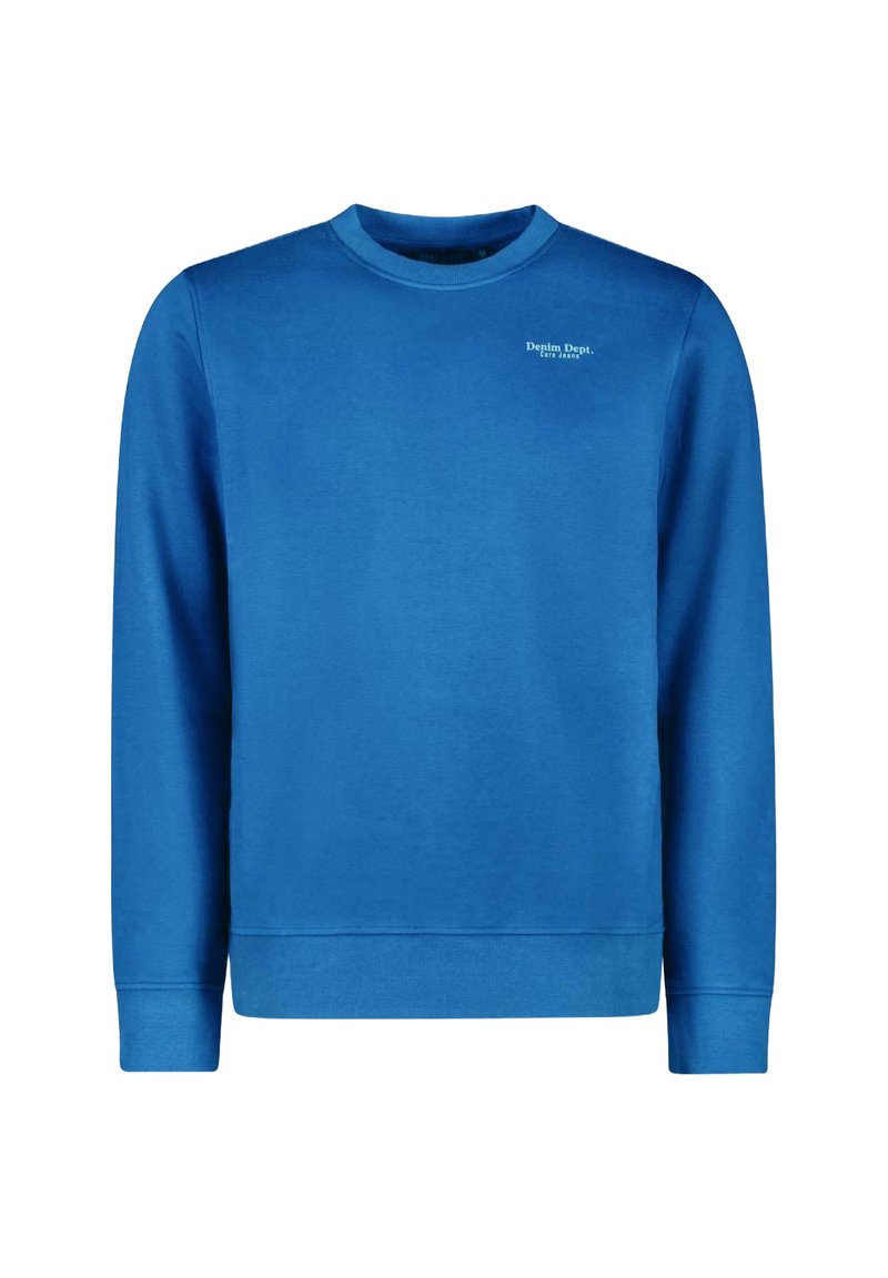 Heldere blauwe sweatshirt met een geribbelde ronde halslijn en lange mouwen, voorzien van een klein "Denim Dept." logo aan de voorkant.