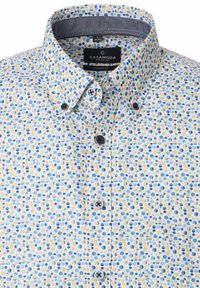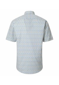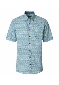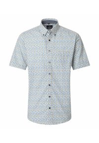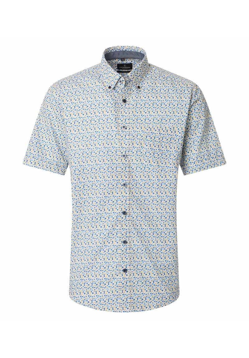 Korte mouwen overhemd met knopen, blauw en beige met een gedoteerd patroon en een button-down kraag.