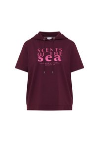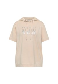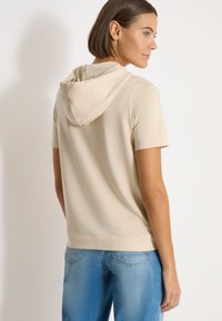 KURZARM SHIRT MIT KAPUZE UND WORDING - T-shirt print - pearl beige
