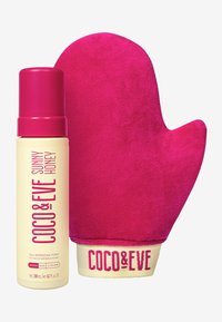 Breng het bruiningsschuim met de fluwelen handschoen in cirkelvormige bewegingen aan en wees daarbij spaarzaam op de handen, polsen, knieën en enkels. Wrijf de lotion op bijzonder droge plekken uit als de bruine tint blijft hangen. Op het gezicht moet het product met een kabuki-kwastje worden aangebracht. Laat minstens 2 uur of een nacht inwerken voor een diepere bruine kleur. Spoel vervolgens af en dep de huid droog. Bevochtig de huid dagelijks om de resultaten in stand te houden.