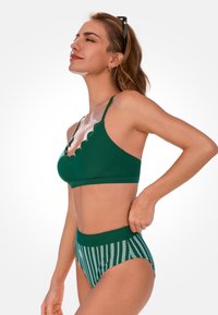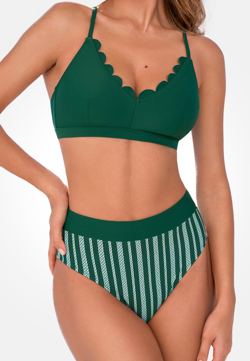 ALLURING SCALLOPED SET - Bikini - olive white stripe