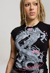 RISING DRAGON FLORAL CAP SLEEVE TEE - T-shirt print - black