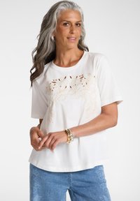 CON RICAMO FLOREALE - T-shirt print - bianco