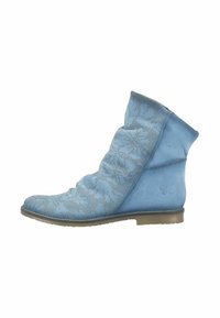 Leren enkellaarsjes in grijs met geperforeerde details, een slungelige vorm en een ritssluiting aan de zijkant. Platte zool met een afgeronde neusvorm.