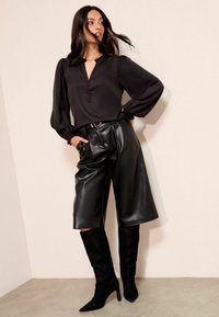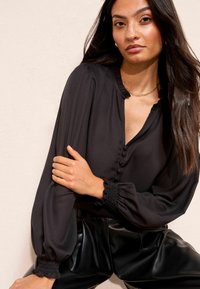 REGULAR FIT - LONG SLEEVE V-NECK BUTTON FRONT - Blouse - black