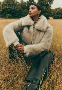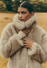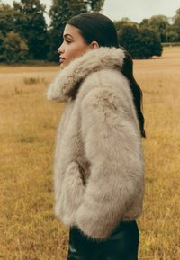 REGULAR FIT - SHORT FAUX FUR COLLAR ZIP THROUGH COAT . - Winterjas - neutral