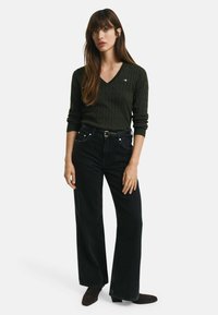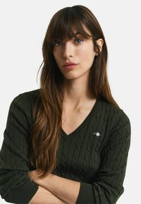 STRETCH CABLE V-NECK - Trui - dark moss green