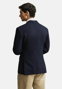 Deze club blazer is een preppy klassieker, perfect voor elke garderobe. Het heeft een slanke, enkelknoopsrij pasvorm die net onder de heupen valt. Gemaakt van een premium wol blend met een hopsack weefsel, is het volledig gevoerd voor comfort. De blazer heeft gekerfde revers, flapzakken, een borstzak met paspel, split aan de achterkant, vilt onder de kraag en merkgebonden goudkleurige knopen. Combineer het met de bijpassende club pak broek voor een opvallende look.