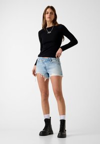 ÜBERKREUZTE TAILLEN-JEANSSHORTS - Jeansshort - hellblau
