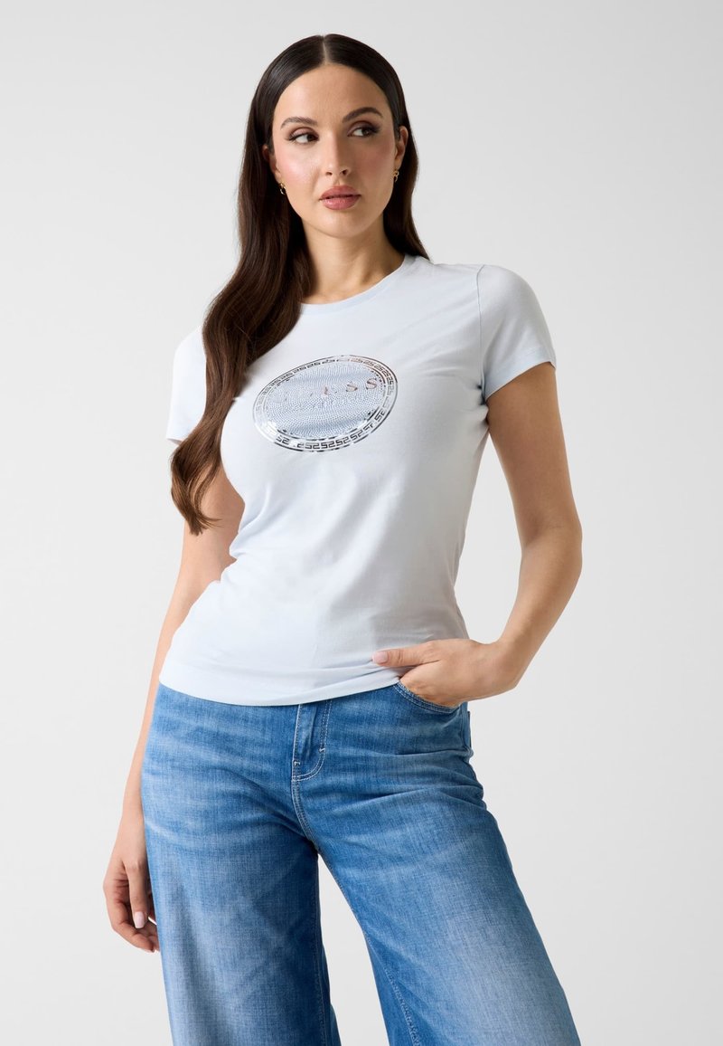 LOGO-T-SHIRT MIT STRASSSTEINEN - T-shirt print - hellblau
