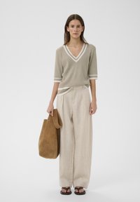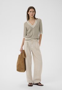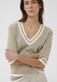 LEENAHIW VNECK - T-shirt print - sandy grey vanilla