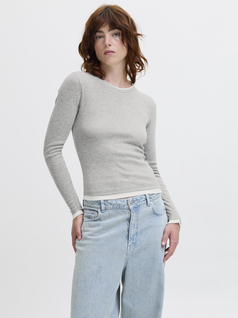 JXHENNA CONTRST - Longsleeve - light grey melange detail:cloud dancer