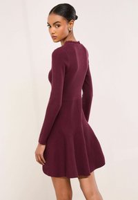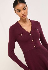 FRINGE BUTTONED V-NECK LONG SLEEVE - Gebreide jurk - berry red