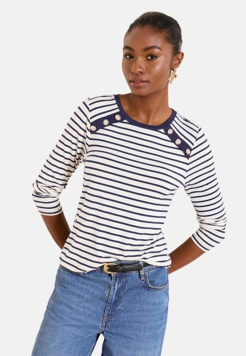 REGULAR FIT - MILITARY BUTTON - Longsleeve - white stripe