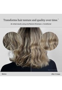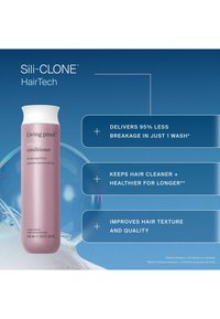Deze conditioner bevat een weekmaker op basis van glutaminezuur, dat het haar versterkt, hydrateert en haarbreuk vermindert, terwijl functionele actieve pinksterbloemolie de strengen voedt en beschermt en hemisqualaan de schubbenlaag verzegelt. Het haar wordt zachter, sterker en is gemakkelijker te stylen.