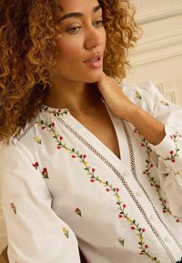 PETITE FIT - NOTCH NECK LONG SLEEVE - Blouse - ivory