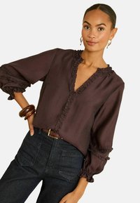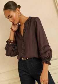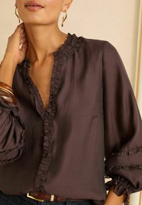 REGULAR FIT - RUFFLE NOTCH NECK 3/4 SLEEVE - Blouse - chocolate brown