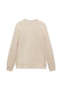 Grijze sweatshirt met een ronde halslijn, geribde manchetten en een ontspannen pasvorm. Gecombineerd met bijpassende grijze sweatpants en witte trekkoorddetails.