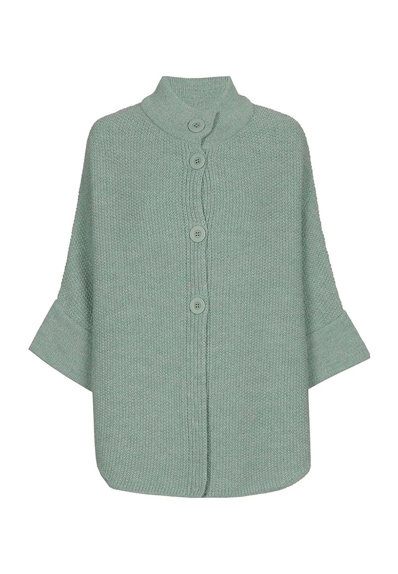 Voeg een vleugje elegantie en functionaliteit toe aan je lentegarderobe met onze chique groene cape met knopen. Dit veelzijdige stuk is een echte must-have voor elke garderobe. Of je hem nu over een jurk of een casual outfit draagt, deze cape zorgt altijd voor een stijlvolle en chique uitstraling. Met zijn elegante design is dit het perfecte accessoire om je look net dat beetje extra te geven. - driekwart mouw - tijdloos en elegant - knopen vooraan