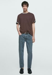 CROPPED - Straight leg jeans - mottled dark blue