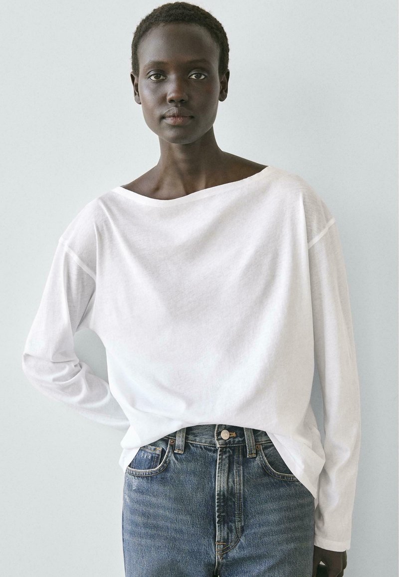 T-shirt vervaardigd van 100% katoen. Lange mouwen. Fijne lichtgewicht stof. Boothals.