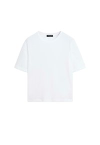 Wijd en ontspannen silhouet, niet getailleerd. T-shirt vervaardigd van 100% katoen. Ronde hals. Korte mouwen.