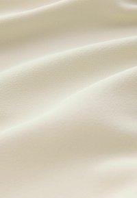Asymmetrische jurk met één schouder in crèmekleurige stof. Heeft een gedrapeerd ontwerp en een knoopdetail op de schouder, waardoor zachte plooien ontstaan.