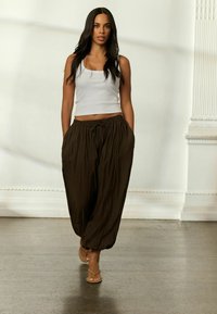 REGULAR FIT - CRUSHED BALLOON LEG TROUSERS . - Broek - chocolate brown