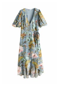 REGULAR FIT - PUFF SHORT SLEEVE WRAP MIDI - Jurk - blue floral print