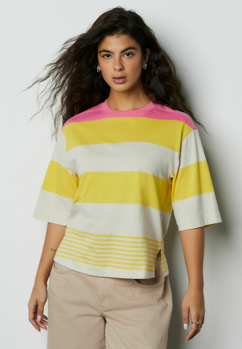 RELAXED BOXY ELBOW LENGTH CREW NECK - T-shirt basic - yellow/pink stripe