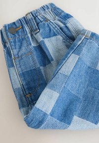 Denim shorts met een patchwork-design in verschillende tinten blauw, een elastische tailleband en standaardzakken voor gebruiksgemak.