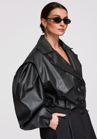 OW-JAFL-0110 - Imitatieleren jas - black