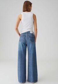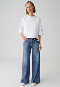 SWEAT WITH DENIM PRINT - Flared Jeans - dark blue