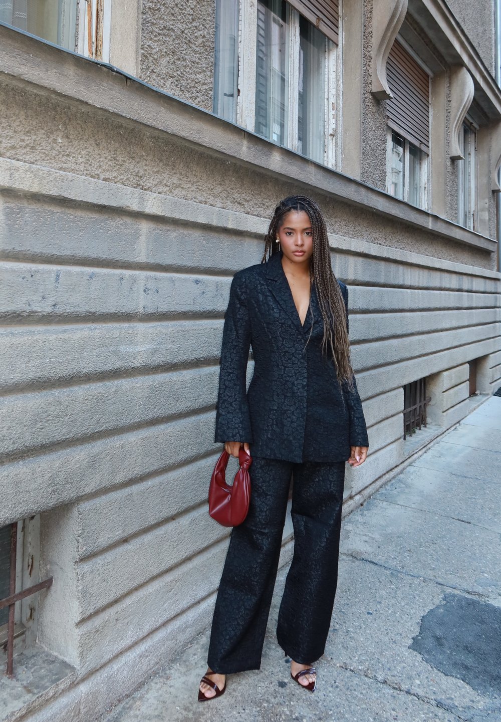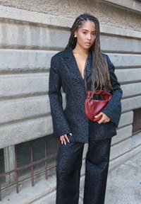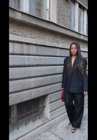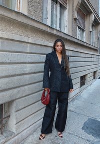 STRAIGHT LEG STRUCTURED MID WAIST - Broek - black