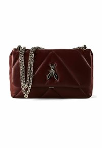 Lichtgroene, gewatteerde schoudertas met een kettinghengsel en een zilveren embleem. Gemaakt van glad materiaal, met een rechthoekige vorm en een klep sluiting.