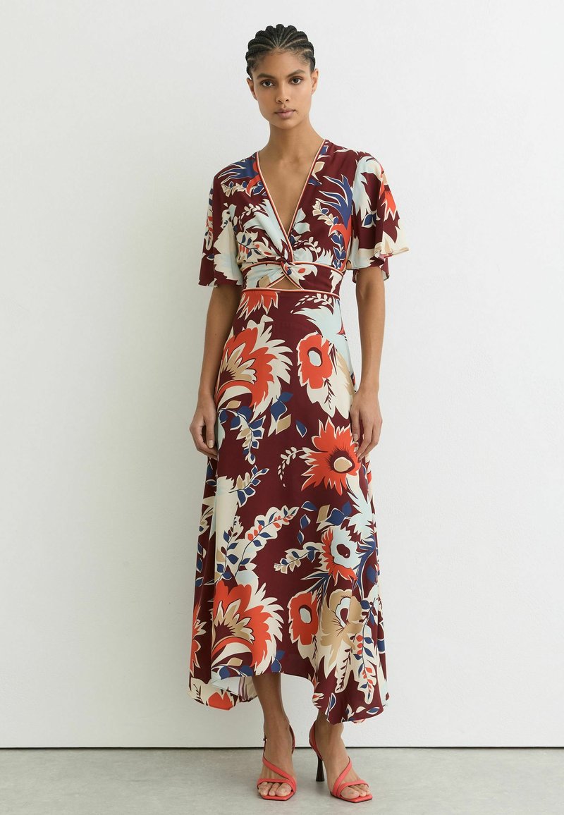ASHA FLORAL-PRINT CUT-OUT - Jurk - burgundy