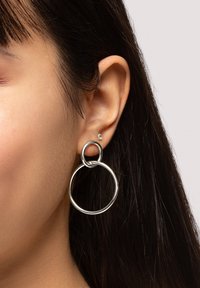 zilverkleurige oorbellen met hangende oorringen die de eeuwigheid symboliseren. Een origineel en bijzonder idee om aan je partner of beste vriend of vriendin te geven.