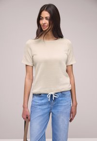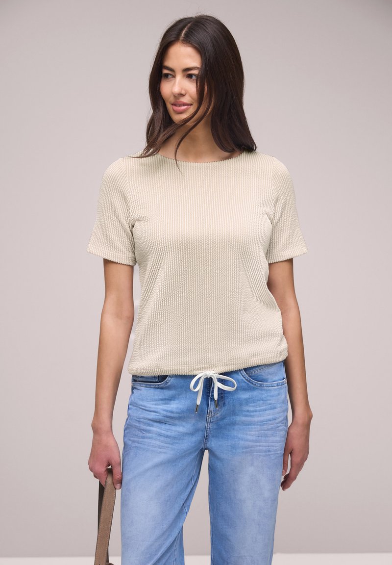 KURZARM SHIRT MIT STRUKTURSTREIFEN - T-shirt print - clay sand