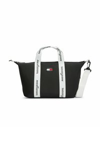 Deze draagtas met handvatten van geweven band met herhalend logo dat doorloopt aan de zijkanten is een stijlvolle keuze voor weekendlooks.Hoogtepunten • Textiel • Ritssluiting • Twee handvatten aan de bovenkant • Afneembare schouderriem • Eén hoofdvak • Eén binnenvak met ritssluiting • Verstelbare zijriemen • Tommy Jeans-logo met herhalend serif-lettertype op de handvatten • Tommy-badge aan de voorkant • Tommy Jeans-logo Vorm en pasvorm • 42 x 13 x 21 cm • Inhoud 8 l Samenstelling en onderhoud • 100% polyester