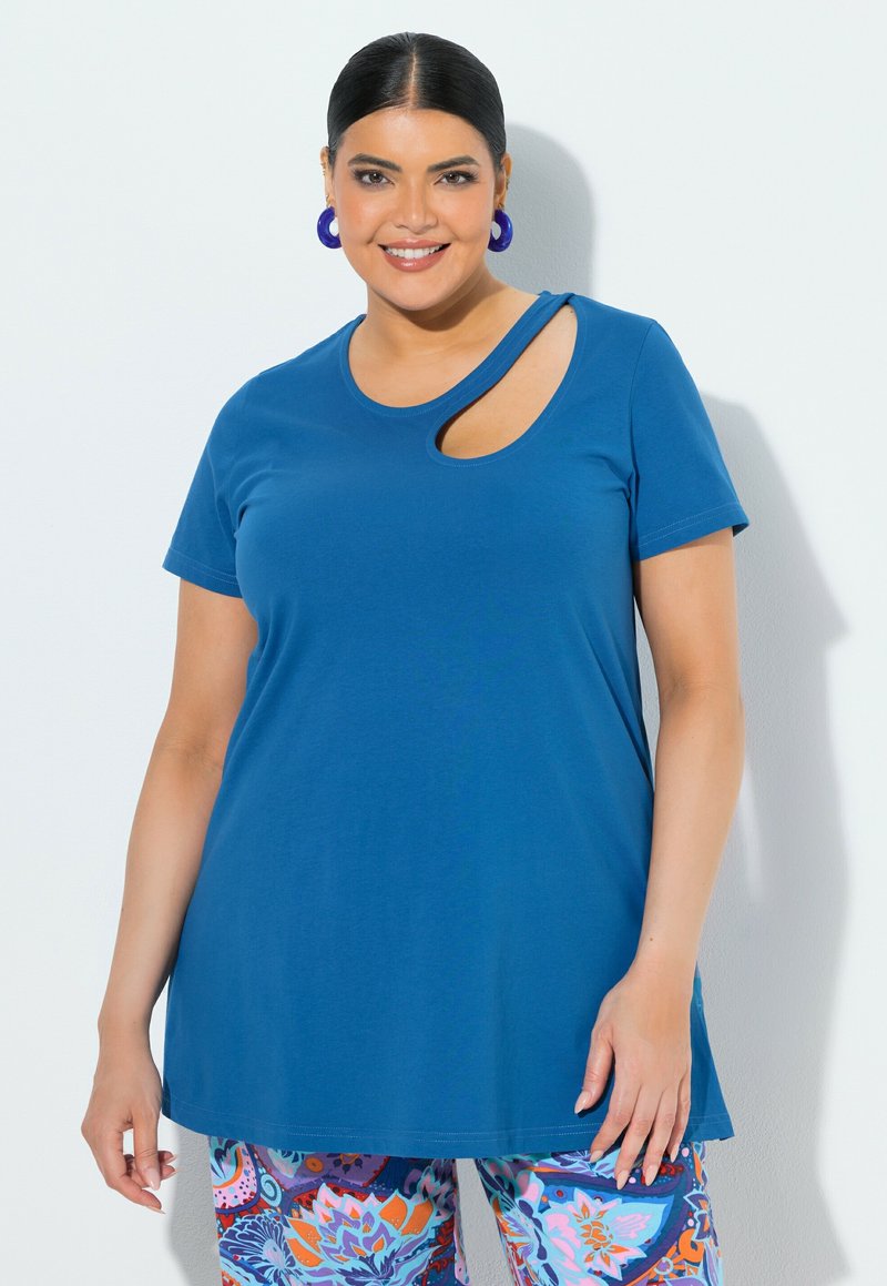 LONGSHIRT, CUT-OUT, A-LINIE, RUNDHALS, HALBARM - T-shirt basic - blue