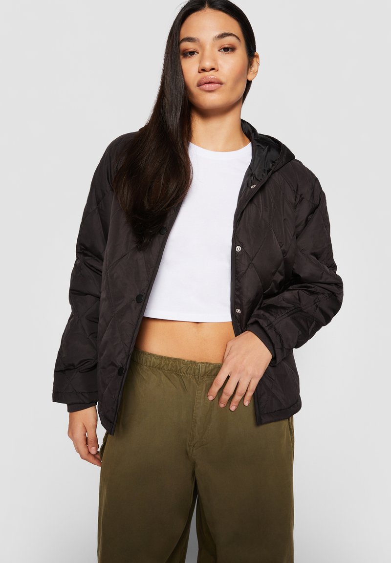 DIAMOND QUILTED HOODED - Jas - black