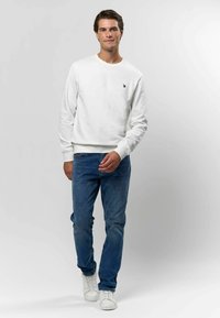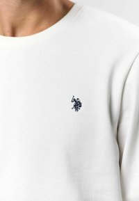 Witte crewneck sweatshirt van zacht katoen, met lange mouwen en een klein zwart logo op de linkerborst. Traditionele pasvorm.