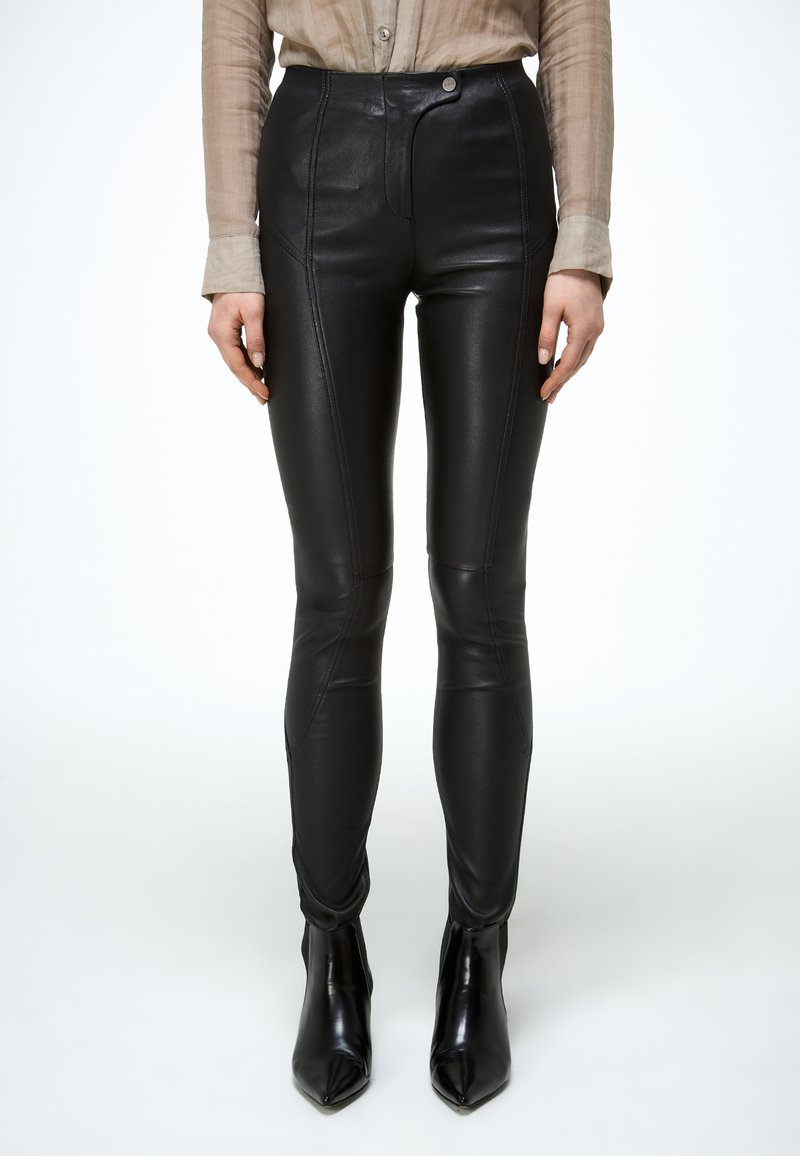 HELGA - Leren broek - black